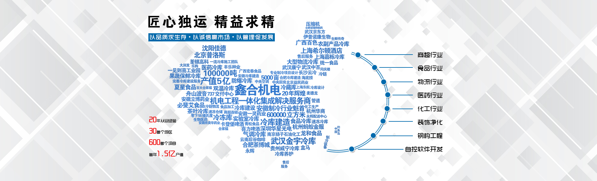 安徽鑫合機(jī)電設(shè)備有限公司于2002年組建運(yùn)營(yíng),專業(yè)從事冷凍、冷藏庫(kù)、中央空調(diào)、醫(yī)藥凈化工程的規(guī)劃設(shè)計(jì)、施工承建、售后服務(wù)為一體的綜合性工程公司,與100多家實(shí)力雄厚的大中型企業(yè)建立長(zhǎng)期產(chǎn)略合作關(guān)系,其中有多家世界500強(qiáng)和上市企業(yè)。公司作為中國(guó)倉(cāng)儲(chǔ)與配送協(xié)會(huì)會(huì)員單位、安徽省制冷學(xué)會(huì)理事單位、上海楊浦區(qū)制冷協(xié)會(huì)工程總承包負(fù)責(zé)單位,引領(lǐng)于行業(yè)前沿。我們將銘記給予我們大力支持的各界新老朋友及合作伙伴,我們將會(huì)保持“互惠互利、共同發(fā)展”的原則與您共創(chuàng)雙嬴的合作關(guān)系。